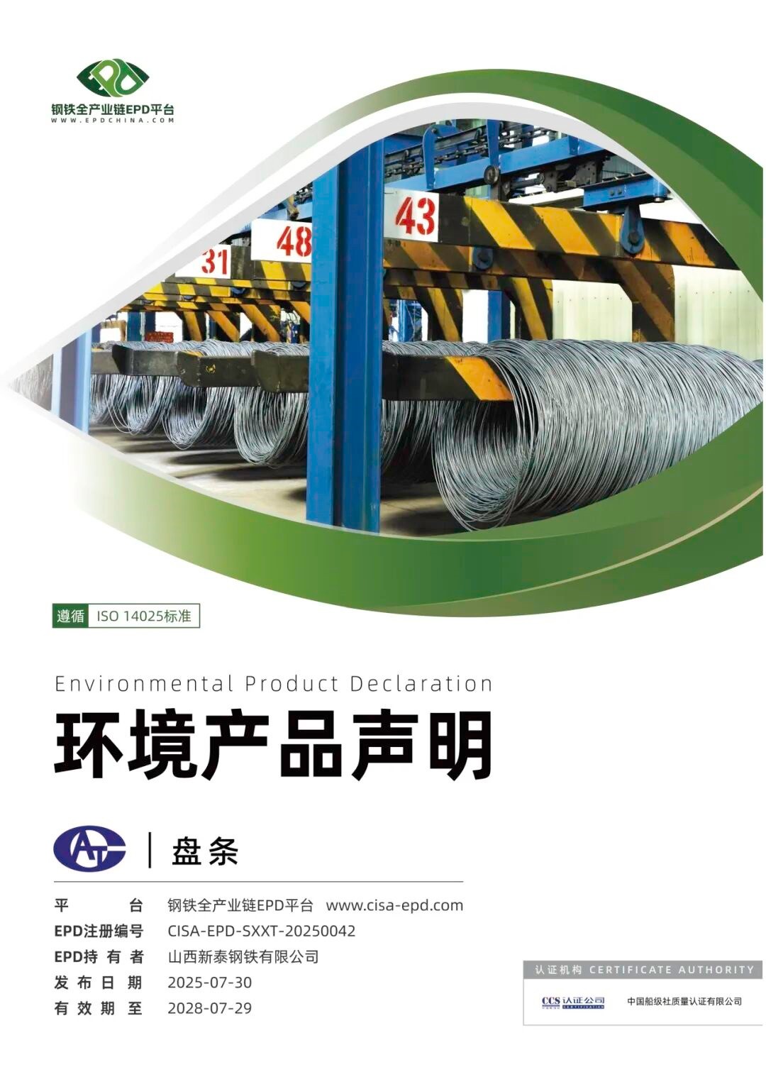 新泰鋼鐵環(huán)境產品聲明(EPD)成功發(fā)布